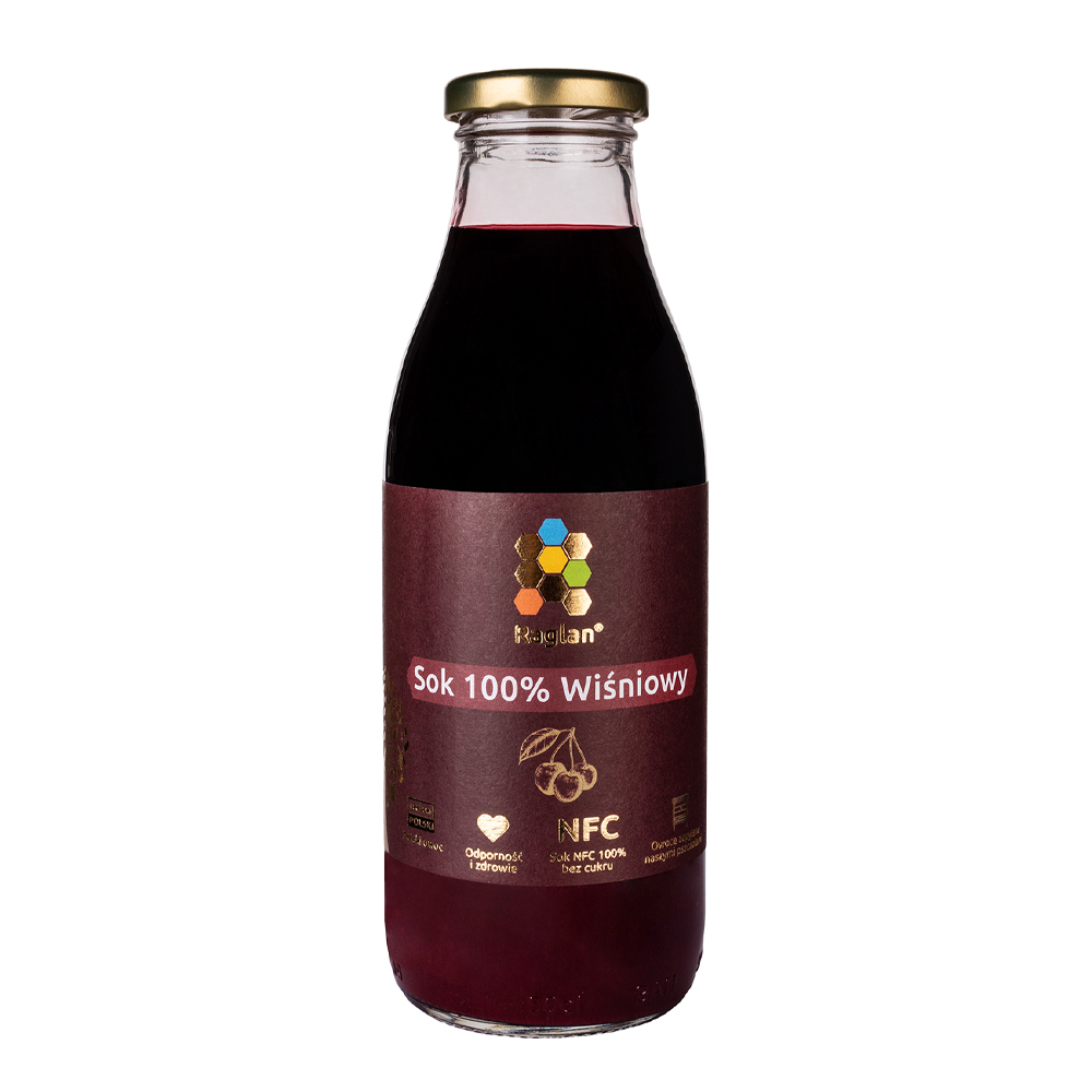 Składniki: Sok NFC tłoczony na zimno z polskich wiśni 100%. Produkt pasteryzowany.